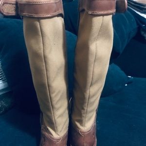 Run small, see below. Great pair of Timberland boots. Very sturdy construction of thick leather, very thick canvas, heavy duty, buckles, and very thick soles. Only wore a couple times. They are a tiny bit small on me and do run small. They would probably be perfect for a size 8 with socks, but an 8 1/2 without socks. There are mine and are very light tiny scratch/scuff marks that can be rubbed out or polished out but it’s due to the softer leather finish.