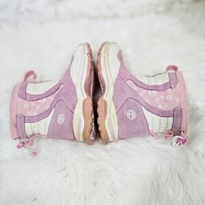 Timberland girls boots pink and white sz.2.5 used but in good condition smoke free home and shipping the same day