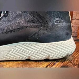 Men’s Timberland Flyroam Chukka Boots with Aerocore Energy System. Sports sneaker. Full placebo front. Wool and leather construction. Good, used condition.