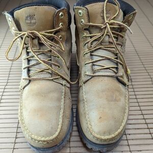 Timberland men's sz 8 Moccasin toe Paracord lace work, hike hunting boots. Some scuffs and scratches. A17pm