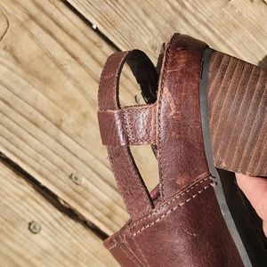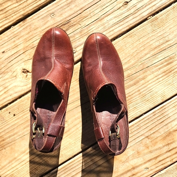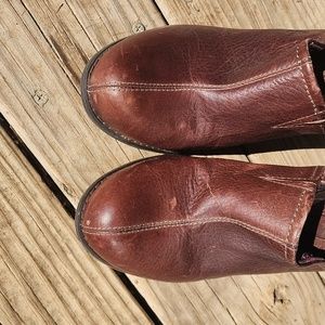 Dark Brown Timberland mules size 8. Only worn a couple times. A few scuffs on the leather just from sitting around. They are comfortable, but after ankle surgery, I can't wear heels 🥲