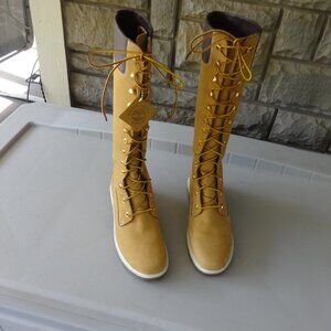 timberland women's size 8M, nubuck leather lace up boots, 14" shaft, wheat color,