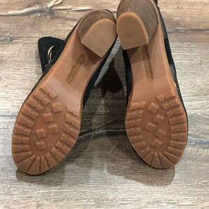 These have not been worn outside. Maybe worn around the house. The leather on the top of the foot looks a little wrinkled. They just sat in my daughters closet for a long time so we decided to sell them!