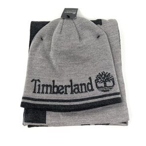 Timberland Gray Reversible Logo Jacquard Muffler & Beanie Set. Excellent condition looks brand new.
