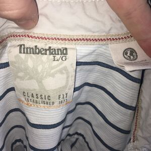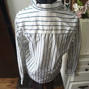 Off white button down shirt with thin blue stripes. In good condition. Approximately 23 inches from armpit to armpit, 31 inches long. From a pet and smoke free house. Happy to bundle!