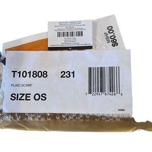 Beautiful new in package tan and off-white plaid Scarf. Cozy and warm. Great as a gift or for your self.