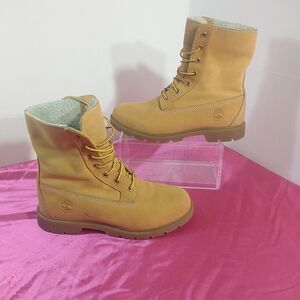 Stylish Timberland boots. Durable leather material. Perfect for outdoor adventures.