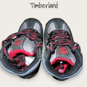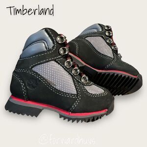 This is a listing for a brand new pair of baby toddler size 4 Timberland hiking boots. These are SO CUTE and are new in a box. The box is in fair condition and is torn on one side. There is a name and phone # written on the top of the box.