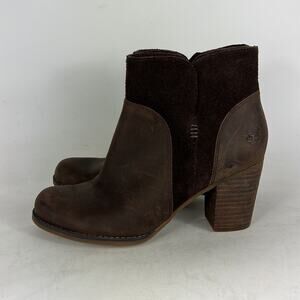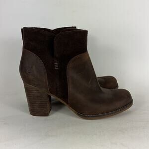Timberland ankle booties women’s size 6.5 brown leather suede stacked heel