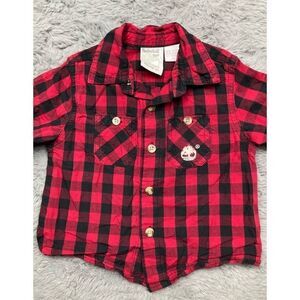 Timberland red and black plaid long sleeve button up shirt