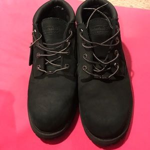 All black low top Timberlands. Only worn a few times, in great condition. Waterproof. Very comfortable. Womens size 10