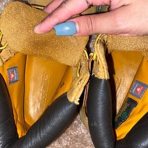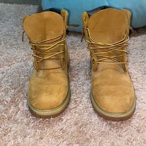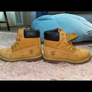 Badass reg style of timbs, barely worn, got a few scuffs but if you love timbs you already know then. ;) and already tied for you so you just gotta slip em on. I wore them maybe 5 times. Good as new.