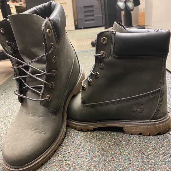 Woman’s gray timberlands. Worn twice. Small scuff as shown.