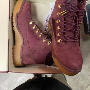 Burgundy and suede.