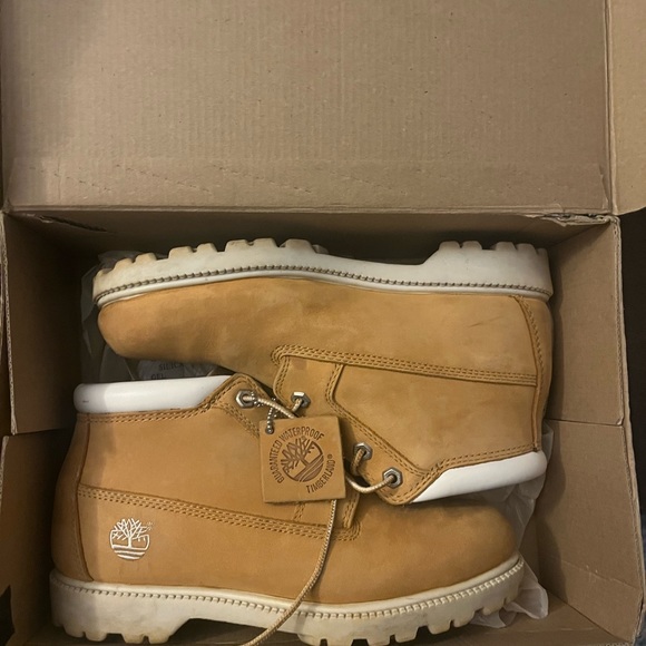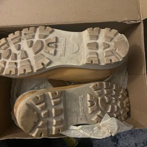 Women’s size 9 timberlands only wore a couple times. Too heavy for my feet…. Comes with box.