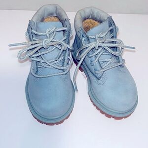 Timberland waterproof blue leather chukka boots small scrape on shoe lace.