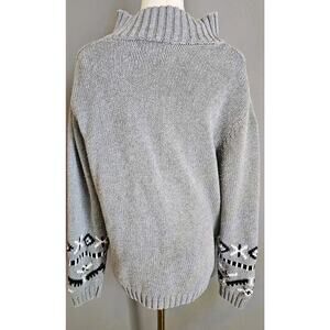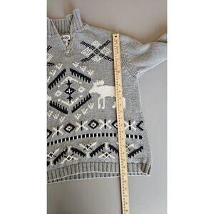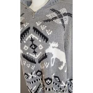 Timberlea Vintage Gray Knit Zip Sweater Reindeer Holiday Christmas Winter Sz L