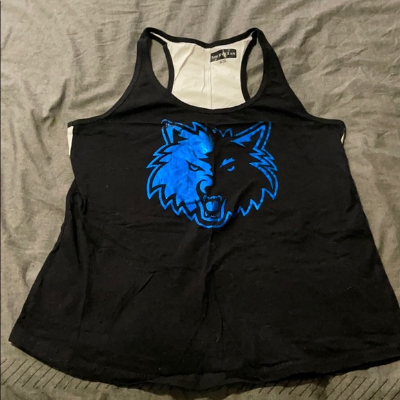 Women’s Timberwolves tank. Wolves logo on the front is a metallic finish