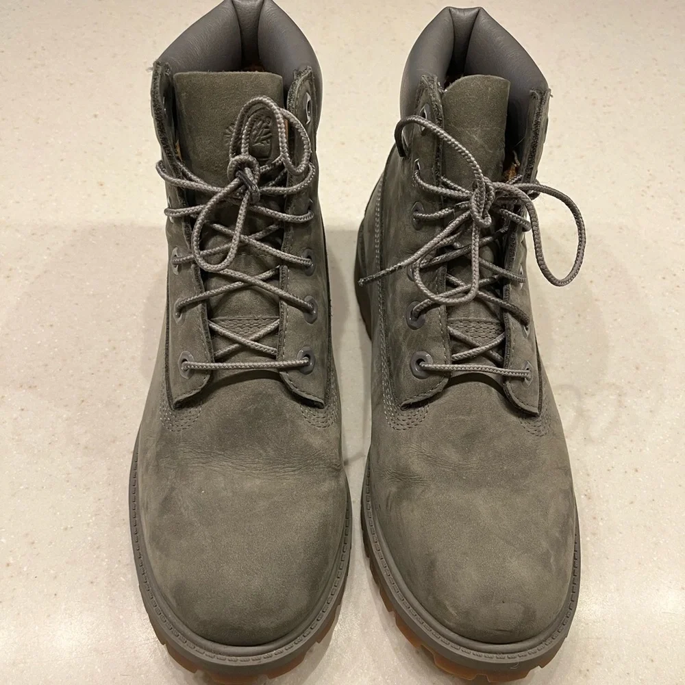 Women’s Timberland boots - size 8 - amazing condition - color is a gray with a slightly green tint!