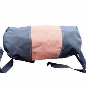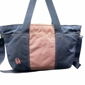 Timbuk2 two-tone nylon travel tote in slate blue & dusty pink. Durable, lightweight, and great for gym, work, commuting, or weekend trips. Features dual top handles, adjustable/removable shoulder strap, zip-top closure, interior zip pocket + mesh pocket. Preloved with interior discoloration/wear (see photos) but fully functional. Approx. 20” W × 12” H × 6” D. Spacious, sporty, and ideal for everyday carry.