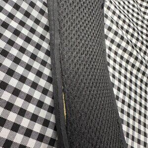 Fair used condition with some lint in the hook and loop areas and some foam peaking through on part of the strap.