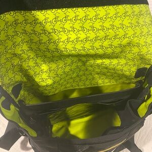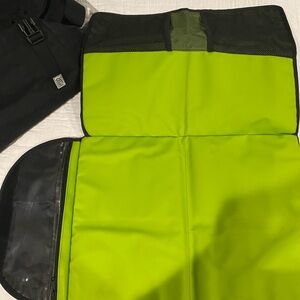 Large interior two inside pockets for bottles includes a diaper pad for changing table and straps