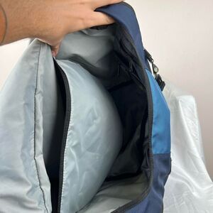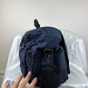 navy blue, adjustable straps, multiple compartments, outdoor gear, utilitarian, tech-compatible, rugged design, travel bag, urban style, functional