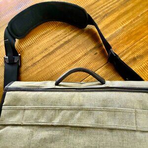 Incredibly functional Timbuk 2 messenger/computer bag. Barely used in EXCELLENT condition. Army green with black canvas handles, straps & trim. Several internal & external organizational pocket & pouches. Removable/adjustable crossbody strap. Converts from shoulder to crossbody to briefcase. Luggage passthrough strap for airport ease. Water resistant. Padded laptop pocket. Versatile AND stylish! High quallity bag.