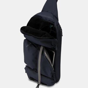 Constructed from an eco-friendly, recycled nylon fiber that's made from pre-consumer waste, the Vapor Sling Crossbody is a fashionable blend of style and functionality. The pillowy soft, satin fabric front features four zip pockets. A tricot-lined top pocket is great for protecting sunglasses and smartphones from scratches, while the roomy main compartment is ideal for the rest of your daily essentials or toting a tablet. The adjustable and ambidextrous carry strap allows you to wear it around your chest or sling across your back. Hip and loaded with flexibility, it will quickly become one of your favorite bags.
