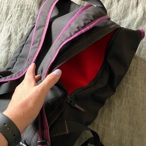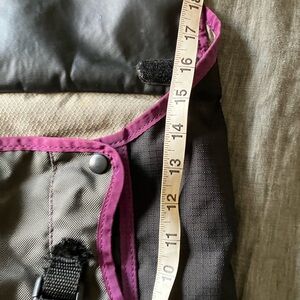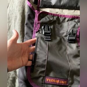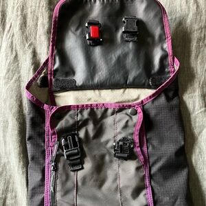Smallish Timbuk2 back pack. It’s about 6” x 11” x 15”.