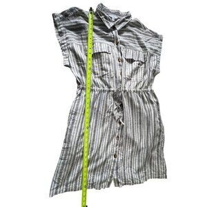 This striped shirt dress by Time And Tru offers a relaxed fit with a drawstring waist, bringing both comfort and style. The button-down front and collared neckline add a touch of sophistication, making it suitable for casual outings or laid-back office days.
