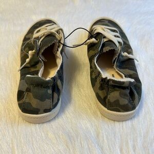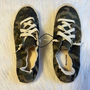 Time And Tru Camo Shoes Womens Size 6 1/2 Green Slip On Stretchy Back Sneakers