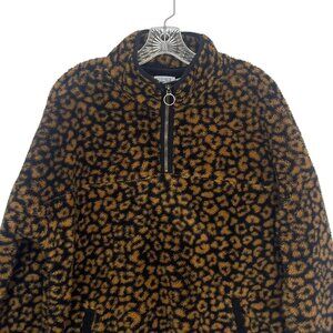 Time And Tru Fleece 1/4 Zip Shirt Leopard Print Womens Large Black Yellow