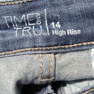 Time And Tru High Rise Jeans Womens Size 14 Straight Medium Wash Denim Raw Hems