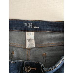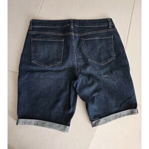 Time And Tru Jean Shorts Womens Sz 16 Blue Denim Cuffed Stretch Mid Rise Pockets