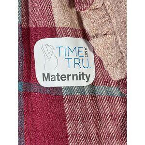 Time And Tru Maternity Pink Plaid Button-Up Top M (8-10) Rayon Blend