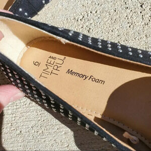 Time And Tru Memory Foam Slip-On Studded Loafers Women's Size 6 Black Silver