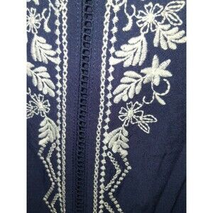 The Time And Tru Multicolor Floral Embroidered Short Sleeve Blouse in size XXXL is a versatile and stylish piece suitable for various occasions such as travel, casual outings, and business meetings. Made from a lightweight rayon fabric with embroidered accents, this blouse features a round neckline and pullover closure for easy wear. The multicolor floral pattern adds a touch of femininity, while the tasseled details give a unique and classic look. Perfect for all seasons, this blouse offers a comfortable and regular fit for plus-sized women looking for a chic and practical wardrobe staple.