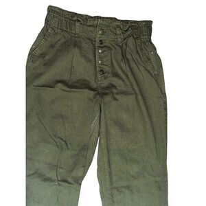Time And Tru Olive High-Waisted Button Front Tapered Pants Size 12 Womens Green