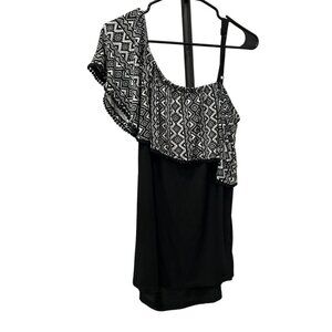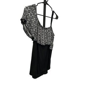 Time And Tru One-Shoulder Black White Ruffle Dress Sz XL