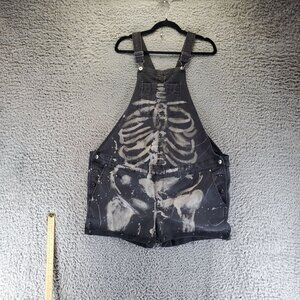 Time And Tru Overalls Womens XL Black Skeleton Print Denim Shorts Shortalls