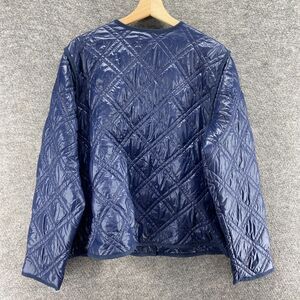 Time And Tru Quilted Jacket Women XL Blue Long Sleeve Crew Neck Button Pockets