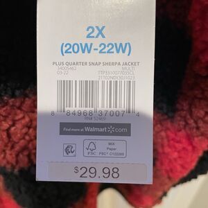 Time And Tru Red Buffalo Plaid Sherpa Sweater Women’s Plus Size 2X NEW