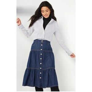 Time And Tru Ruffle Tiered Denim Skirt Women's 14 Blue Boho Farm Cottagecore EUC