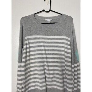 Time And Tru Sweater Top Gray Striped Size XL Pullover Long Sleeve 16-18