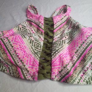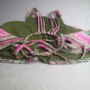 Time And Tru Swim Top M 8-10 Cut-Out Strappy Green Pink