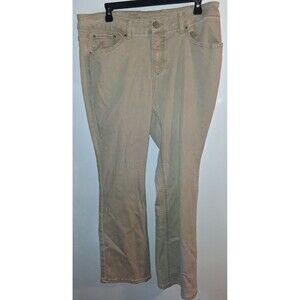 The Time And Tru Tan Bootcut Jeans in size 18 are stylish and comfortable denim pants perfect for any season. Featuring a mid-rise waist and a bootcut style, these jeans have a 5-pocket design and a classic solid tan color. Made with a blend of polyester, spandex, cotton, and rayon, they are easy to care for with machine washable fabric. The jeans are designed for a regular fit and come in a flattering plus size 18, making them a versatile and timeless addition to any wardrobe.