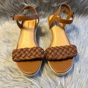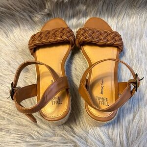 Time And Tru Wedge Sandals Womens Size 9 Brown Open Toe Ankle Strap Shoes