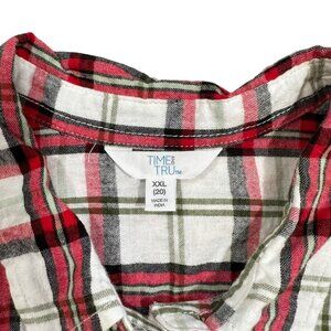 Time And Tru Women Flannel Red-White Button Down Shirt SZ XXL (20)