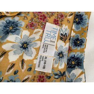 The Time And Tru Women Multicolored V-Neck High Low Tunic Blouse in size XL is a versatile and stylish top suitable for various occasions. Made from 100% polyester rayon, this blouse features a floral pattern, long drop sleeves, and a pullover closure with half buttons. With a relaxed fit and lightweight fabric, it is perfect for summer, fall, and spring seasons. The blouse is easy to care for, machine washable, and packable, making it a convenient choice for travel, casual outings, formal events, workwear, or business meetings. Displaying a colorful theme and a collarless design, this blouse from Time And Tru is a fashionable and practical addition to any woman's wardrobe.